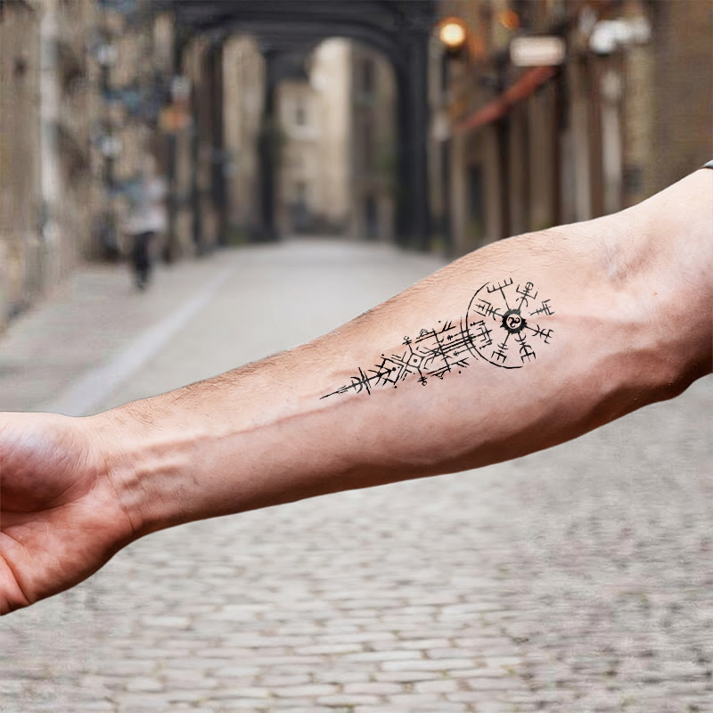WorldNorse Architect Sigil Pillar Vegvisir Waterproof Tattoo Stickers - Two Pieces - image 0