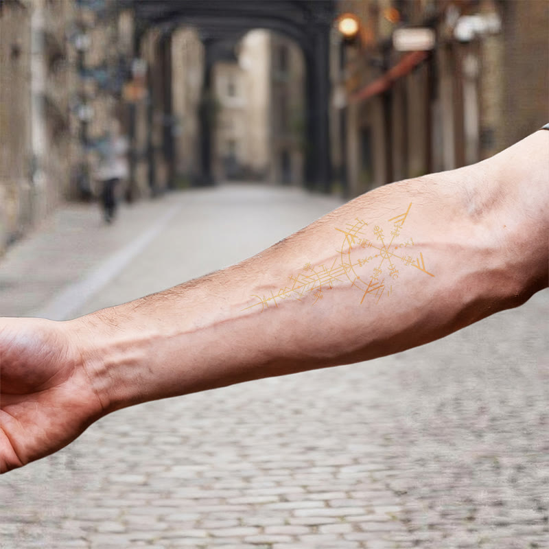 WorldNorse Gilded Vegvisir Lance Waterproof Tattoo Stickers - Two Pieces - image 0