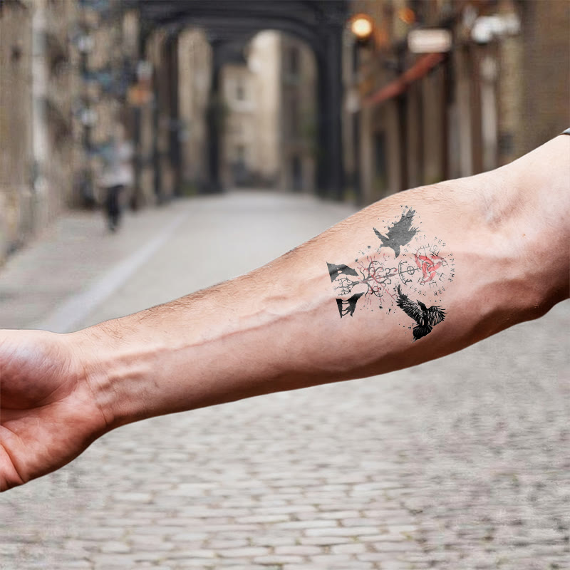WorldNorse Raven Wolf Yggdrasil Rune Waterproof Tattoo Stickers - Two Pieces - image 0