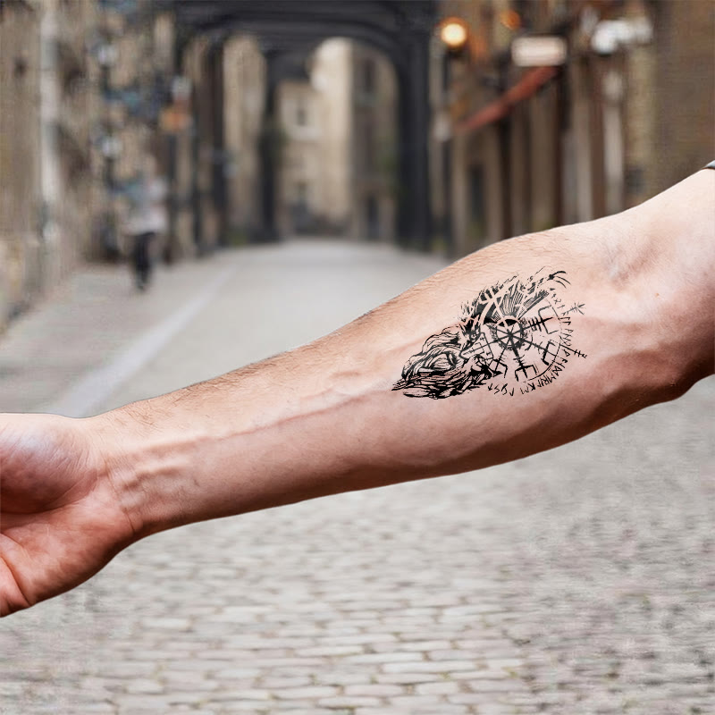 WorldNorse Seer Odin Totem Vegvisir Waterproof Tattoo Stickers - Two Pieces - image 0