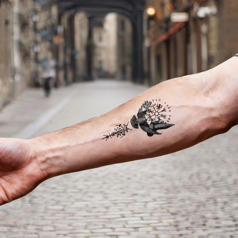 WorldNorse Viking Dark Rune Raven Emblem Waterproof Tattoo Stickers - Two Pieces - image 0