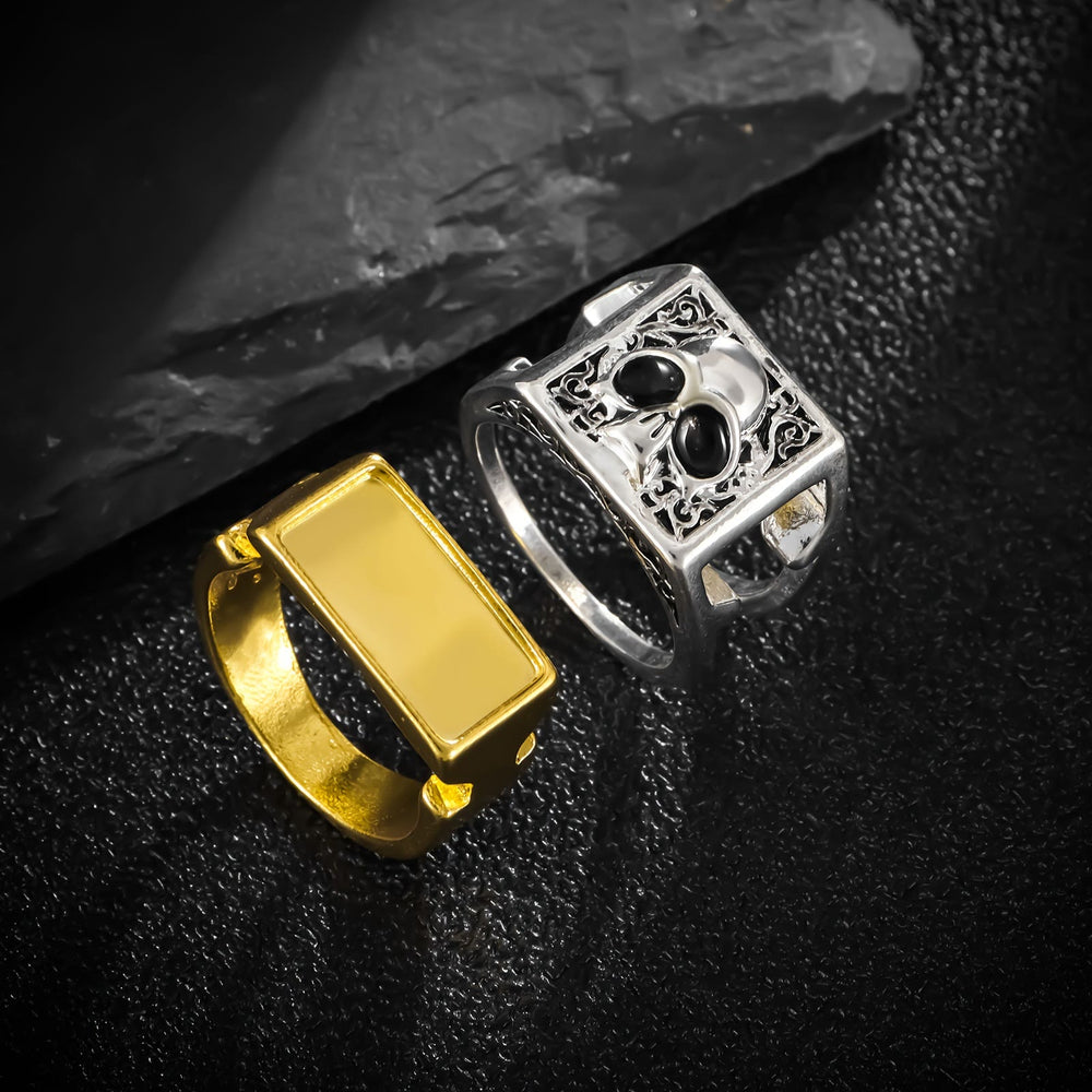 WorldNorse Gothic Punk Square Skull Combination Ring