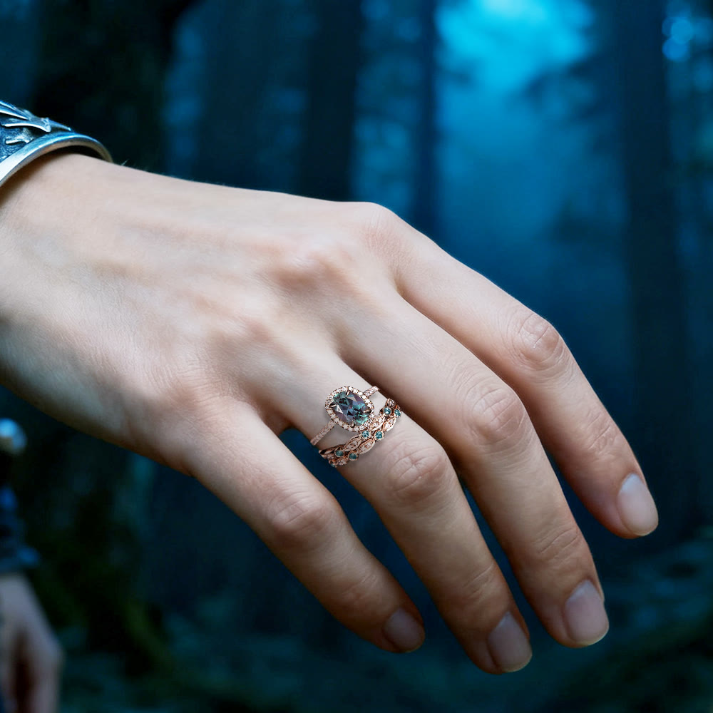 Designed for those who cherish both destiny and devotion, the Lucky Alexandrite & Emerald 3-piece Ring captures the magic of timeless vows. It is a set perfect for engagements or anniversaries.
