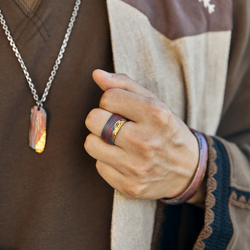 WorldNorse 999 Sterling Gold Artisan Iridescent Streaked Ring