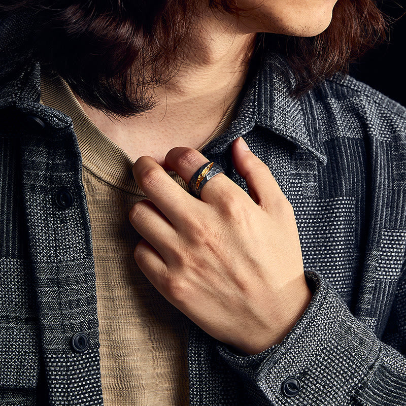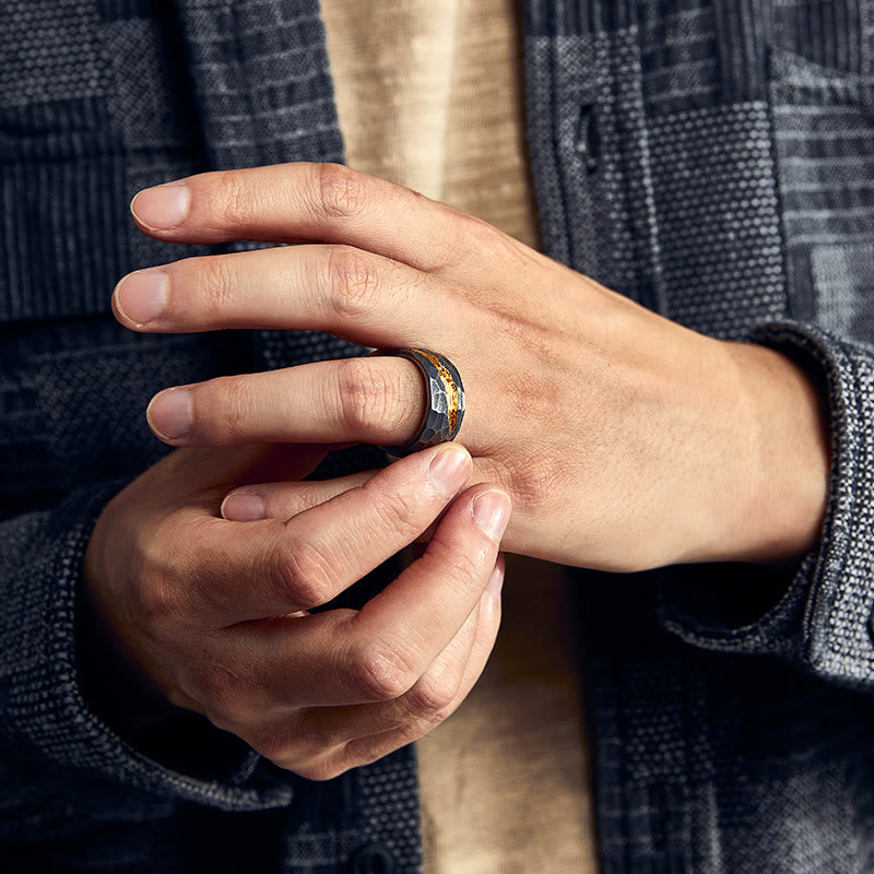 WorldNorse 999 Sterling Silver Lava Encrusted Gold Veined Ring - Retro Black (Inner Circumference 65-67.5 mm) - image 0